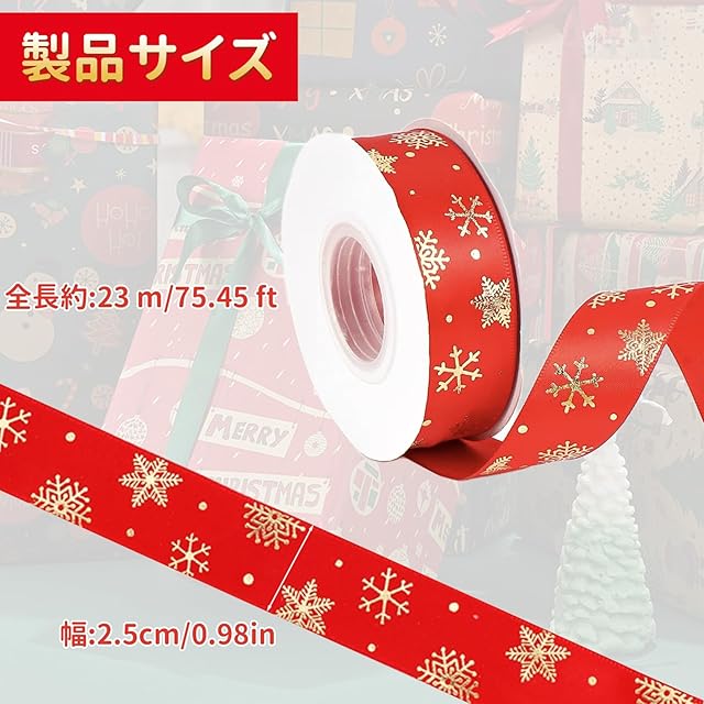 【パッケージ内容】セット内容:クリスマス リボン×1。長さ:約23m。幅さ:2.5cm。素材:ポリエステル。