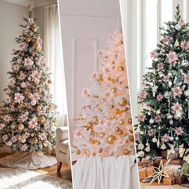 クリスマスの雰囲気を高めるこのローズゴールドの装飾的な花は、お部屋を上品で華やかに演出します。21個のセットには、大きさの異なる3種類の花が含まれています。最大サイズは直径約16.5cm、中サイズは約12cm、最小サイズは約10cmです。きらびやかなグリッターが施された繊細なデザインは、クリスマスツリーや壁掛け、テーブルセンターピースなど様々な用途で活躍します。華やかさとエレガンスを兼ね備えた、この特別な装飾品で、今年のホリデーシーズンを彩りましょう。