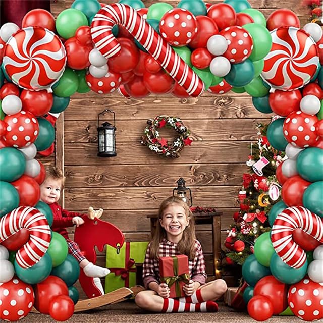 DUOLEIMI クリスマス風船 飾り付け バルーンセット バルーンアーチ 風船レッド クリスマス飾り 金 赤 緑 バルーン バルーンアーチ パーティーグッズ アルミバルーン 雪の結晶 スノーフレーク イベント 装飾 (C)