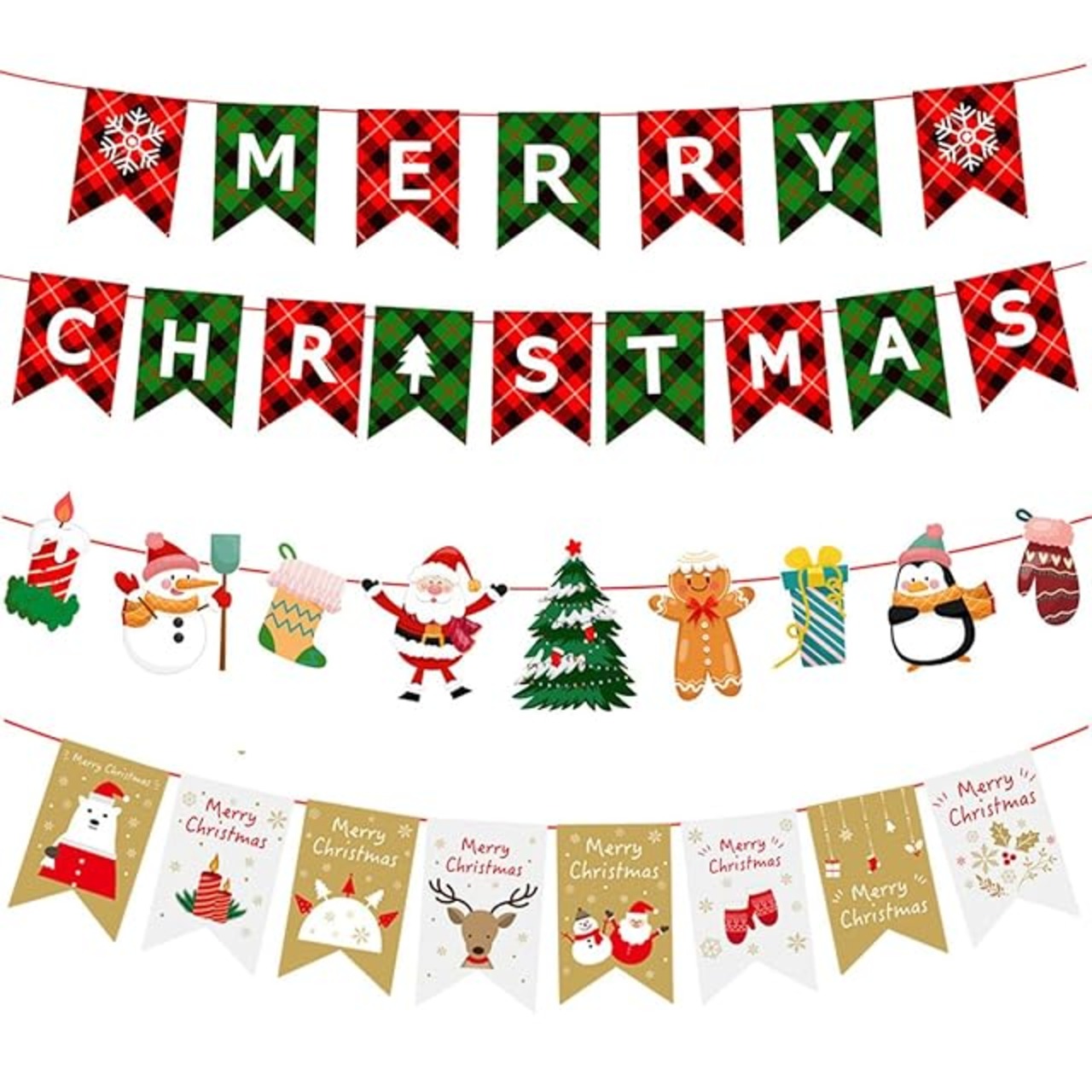 TuBaoBao クリスマス 飾り クリスマス ガーランド Merry Christmas 可愛い クリスマス パーティー 装飾 飾り付け 壁飾り 両面 厚紙 紐が付き (3種類セット B)