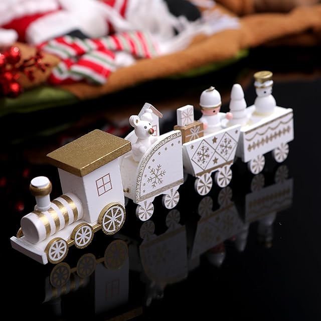 CINECE クリスマス 飾り オーナメント 置物 木製 列车 かわいい ミニ プレゼント ギフト 雑貨 ツリー 室内 卓上 玄関 工芸品 1個 (B 白)
