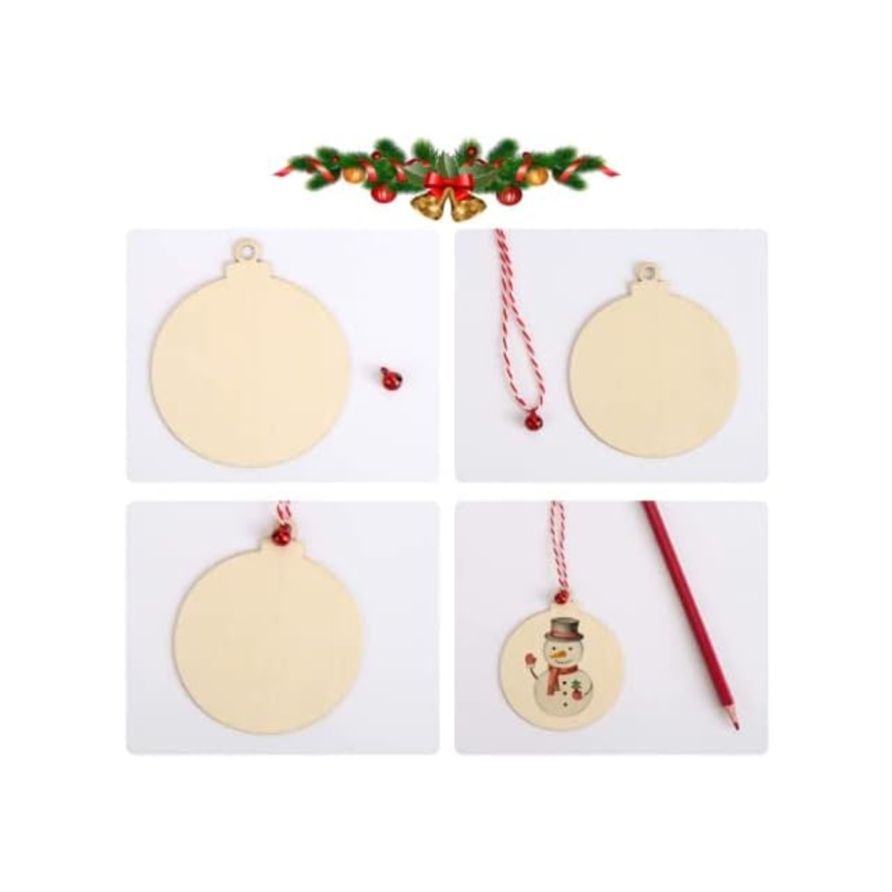 DERAYEE クリスマス 飾り オーナメント クリスマスツリー飾り 木製 20pcs 無地 吊り DIY ベル付き 麻糸10m 原木色 ストラップ XMAS