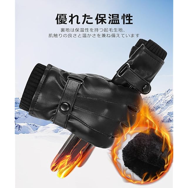商品名:[Kemolpo] 手袋 メンズ 革手袋 スマホ対応 防寒 レザーグローブ 裏起毛 保温 防風 撥水加工 バイク 運転 通勤 秋 冬 (ブラック-3本ライン飾り)