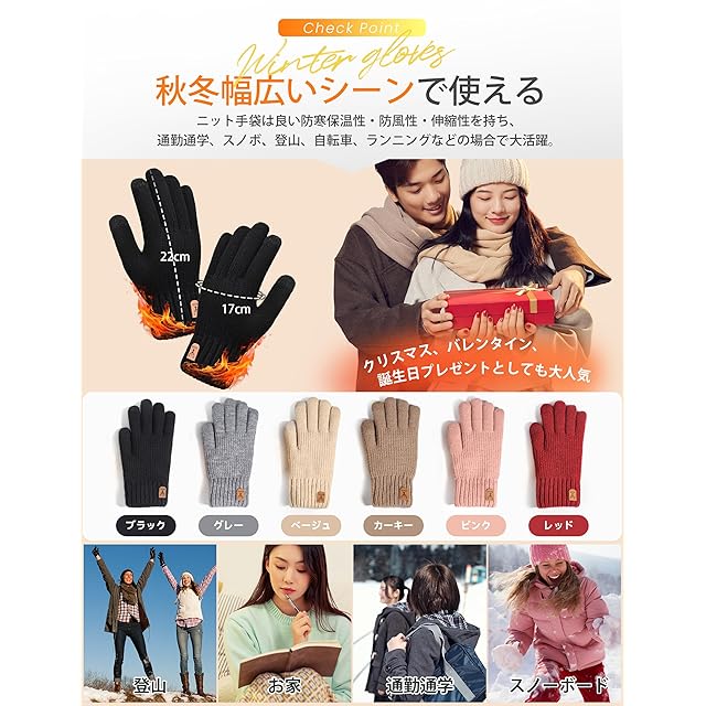 【サイズ&素材】✅フリーサイズ:全長→22CM、手のひら→8.5CM。素材構成:81%-95%アクリル、そのほか。