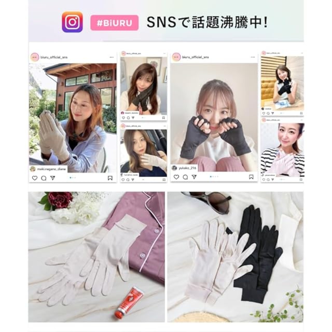 商品名:[BiURU] ナイトグローブ シルク手袋 絹 手荒れ uvカット ハンドケア (ブラック22FW, S)