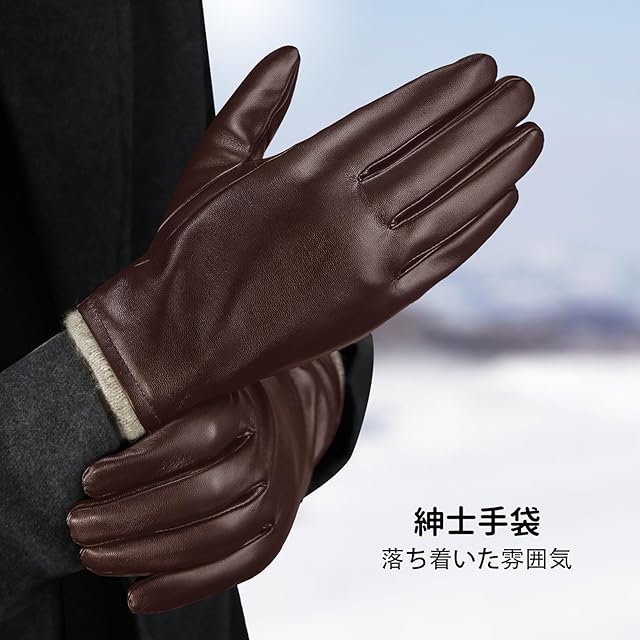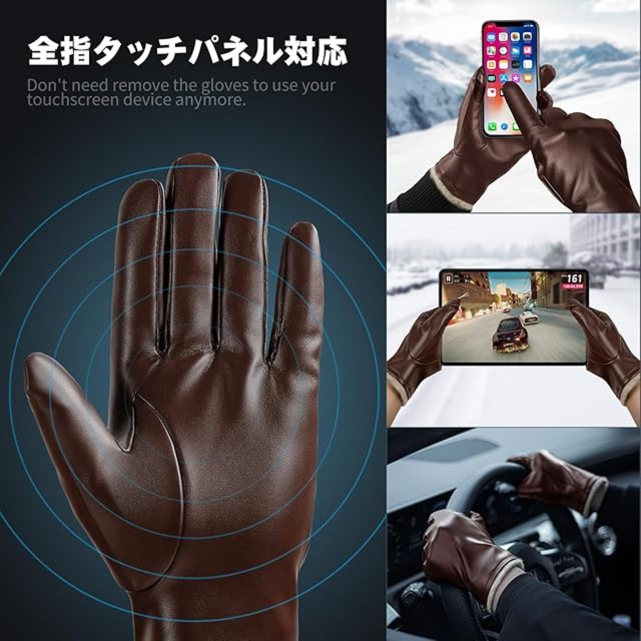 [OZERO] メンズ 手袋 スマホ対応 裏起毛(ウール) 革(PUレザー) 紳士 冬用 ブラック/ブラウン S M L サイズ