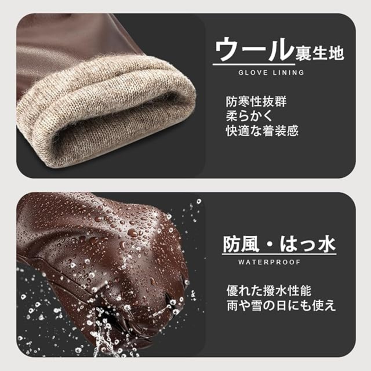 【防寒・防風性】表地はPUレザーで防風性があり、裏地は70%ウール+30%アクリル繊維材質で両手を温め、完璧な組み合わせです。