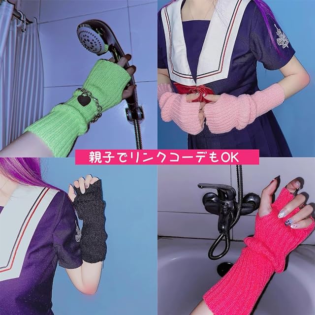商品名:[ZGKULAEAOW] 選べる23色 カラフルカラー アームウォーマー 指なし子供 親指穴付き アームカバー ニット 手袋 キッズ ネオンカラー 派手 運動会 ダンス小物 ママ揃い (ローズ)