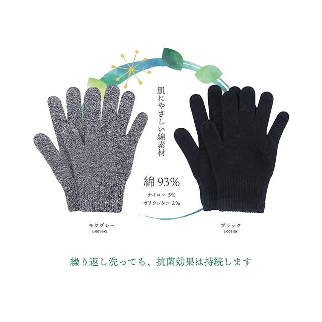 商品名:福徳産業 綿手袋 抗菌 ブラック フリーサイズ 1双入 日常用 肌にやさしい 綿素材 天然有機系デオドラント加工 日本製 ロンフレッシュ L-001-BK