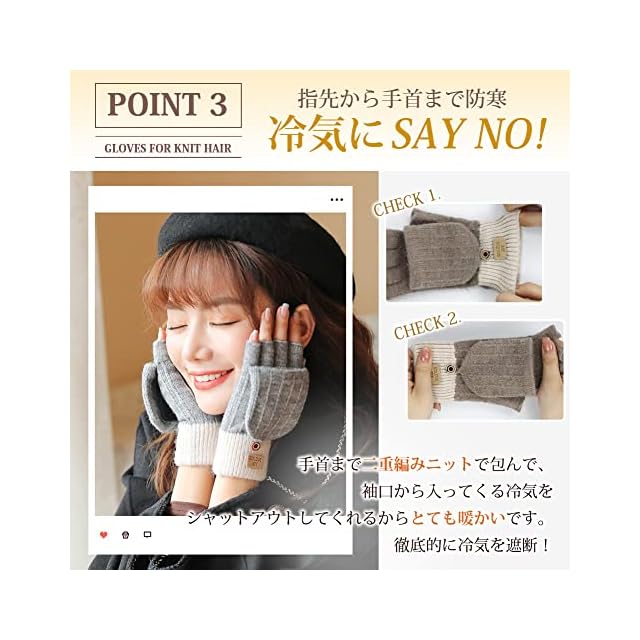 【2way!寒さや用途に合わせて変更でき】 指切り・作業便利:寒い室内では、手元が冷えがちです。タイピングが必要なサラリーマンや宿題をする学生は、指なし手袋で宿題をするときに邪魔にならず、寒さ対策だけでなく快適に操作できる便利です!少ししか指先も出ないし、スマホ対応できて、スマホ手袋とオススメ! ミトン・360°防寒:寒い屋外では、フードをかぶせて、暖かい防寒手袋になります。寒さや用途に合わせて変更できるミトン手袋です。実用と美観を兼ね備えたレディース 防寒 手袋です。