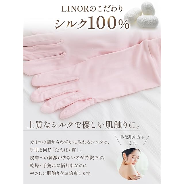[LINOR]シルク手袋 手荒れ-手袋 寝る時 おやすみ手袋 ナイト手袋 ハンドクリーム 手袋 保湿 ハンドケア uvカット 日焼け防止 レディース シルク 100% うるおい手肌 (ベージュ)