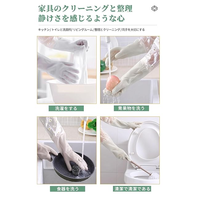 【オールラウンド家事】食器の洗浄、台所の油汚れの洗浄、浴室・トイレの深い汚れ落とし、洗車・園芸などの屋外での作業など、この多機能ゴム手袋は完璧にこなせる。上質な材質を採用し、両手に密着させ、汚れと水分を効果的に遮断し、頻繁に洗剤や水分に触れて手が荒れて乾燥しないようにし、蒸し暑い夏でも手袋は通気性に優れている。