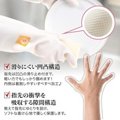 手指に優しいビニール手袋 しっかりと安定した着用感が得られるやや硬めの材質で、トラブルを抱えた手指をサポートします。*手指・関節にトラブルがある方むけのため手を入れた際、ゴワゴワ感があります
