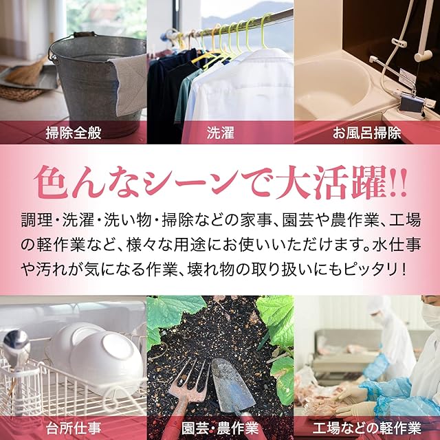 ✅【どんなシーンでも活躍】調理・洗濯・洗い物・掃除など家事用だけでなく、工場での軽作業、ガーデニングや農作業などの屋外作業にも。