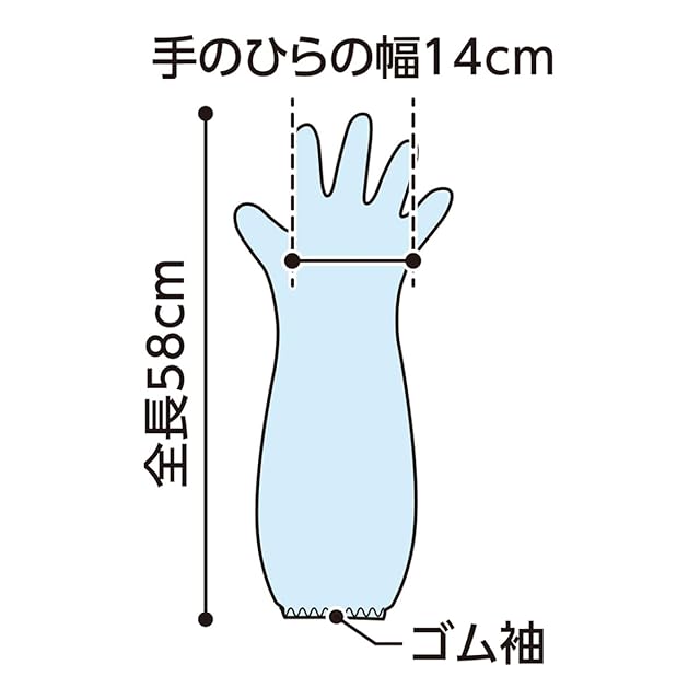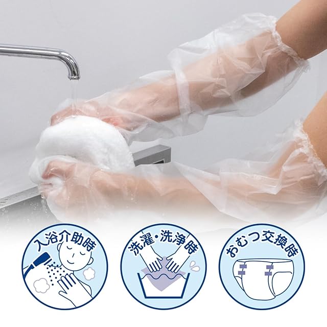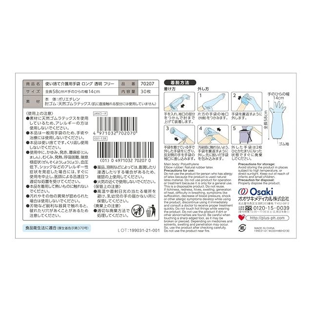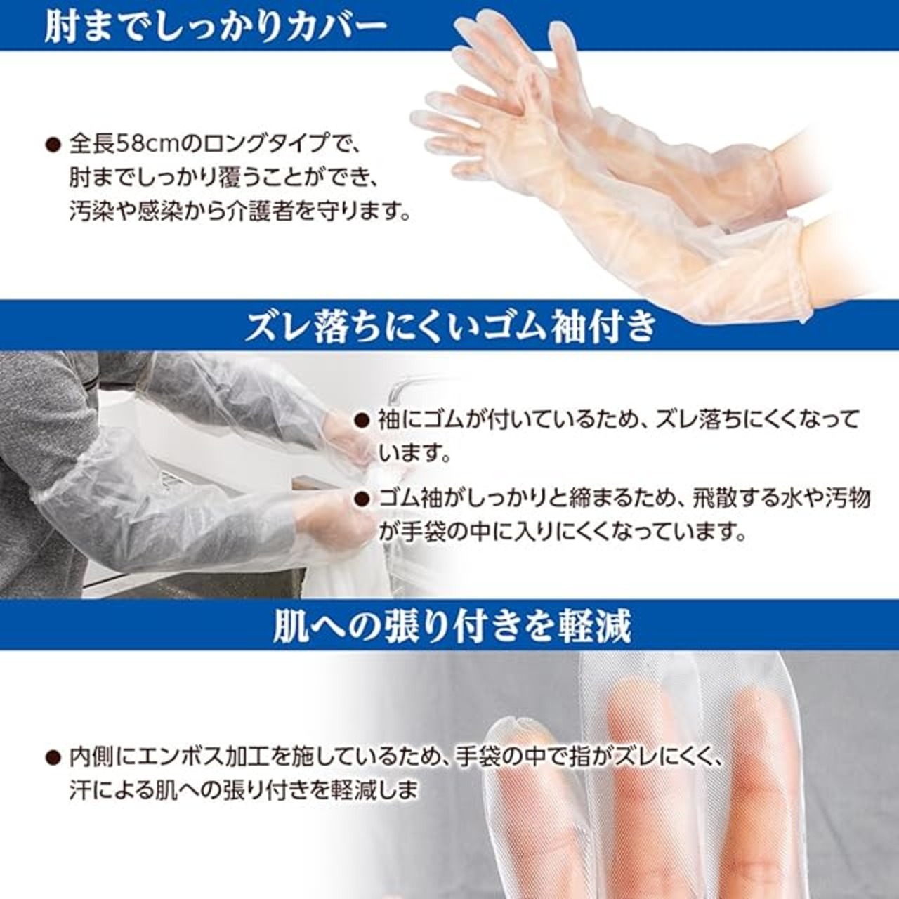 商品名:プラスハート 使い捨て介護用手袋 ロング 30枚入 フリーサイズ ゴム袖付 70207