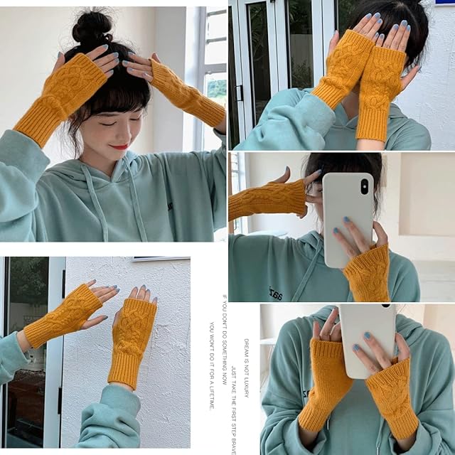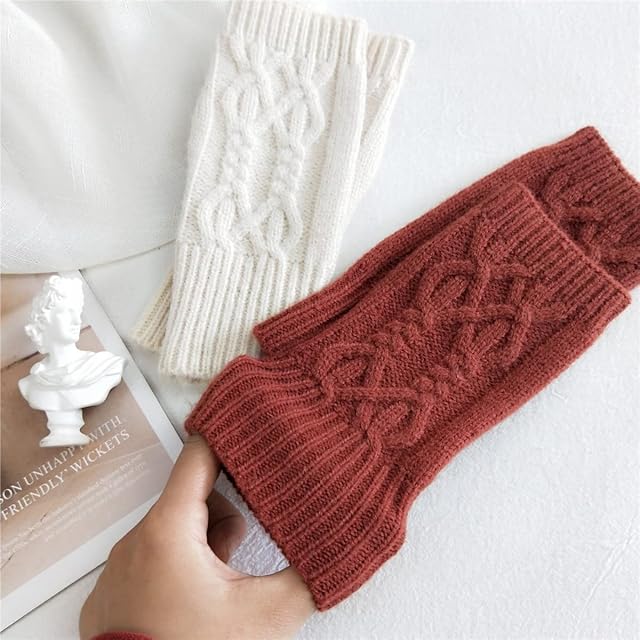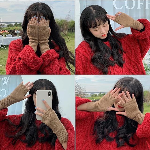 [Qzkouma] ハンドウォーマー レディース メンズ スマホ 指なし 手袋 秋冬 防寒 ニット手袋 暖かい手袋 親指穴付き フィンガーレス グローブ HHT-069(ベージュ)