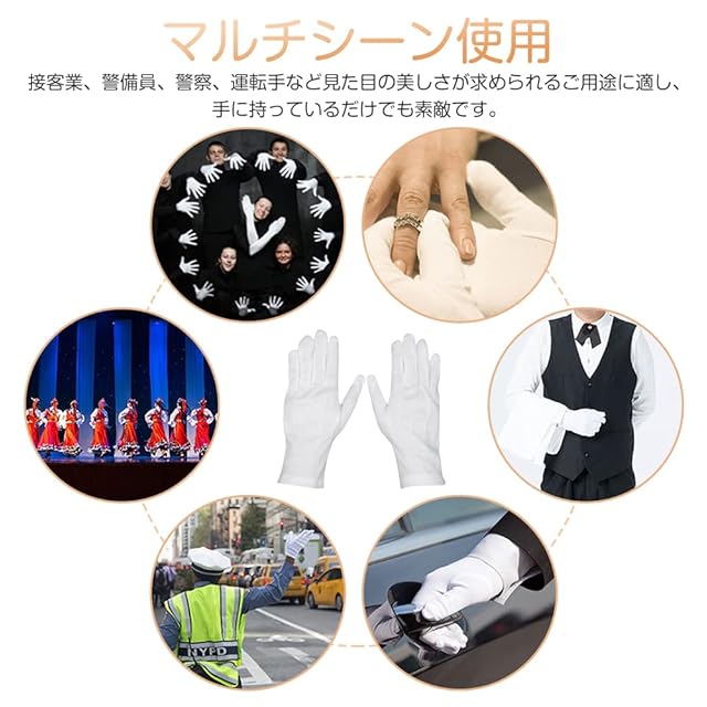 ☸ 光沢が美しいナイロンコットン製で、冠婚葬祭だけでなく、式典やモーニングなどを着る際に必要な礼装用手袋として、接客業、警備員、警察、運転手など見た目の美しさが求められるご用途に適し、手に持っているだけでも素敵です。