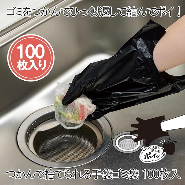[オルディ] つかんで捨てられる手袋ゴミ袋 100枚入 中身が見えない ポリ袋 ビニール袋 キッチン 浴室 洗面台 排水口 厚手 生ごみ おむつ トイレ 介護 ペット 散歩 丈夫 スーパー レジ 66058500