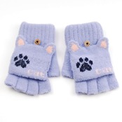 [CLARAH] 手袋 女の子 キッズ グローブ 手ぶくろ ねこ ネコ 猫耳 子供 子ども こども 指なし手袋 幼稚園 小学生 パープル おしゃれ 可愛い スマホ対応 2way 雪遊び ポス 防寒対策