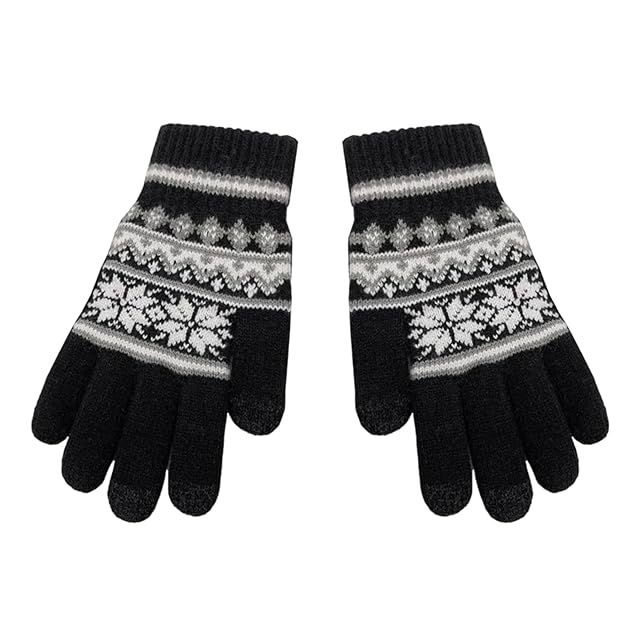 [GOODCHI] 手袋 防寒グローブ ニット 毛糸 ノルディック柄 おしゃれ 人気 タッチパネ スマホ手袋指先 秋冬用 防寒 通勤 運動 メンズ レディース 男女兼用 ニット手袋 ブラック