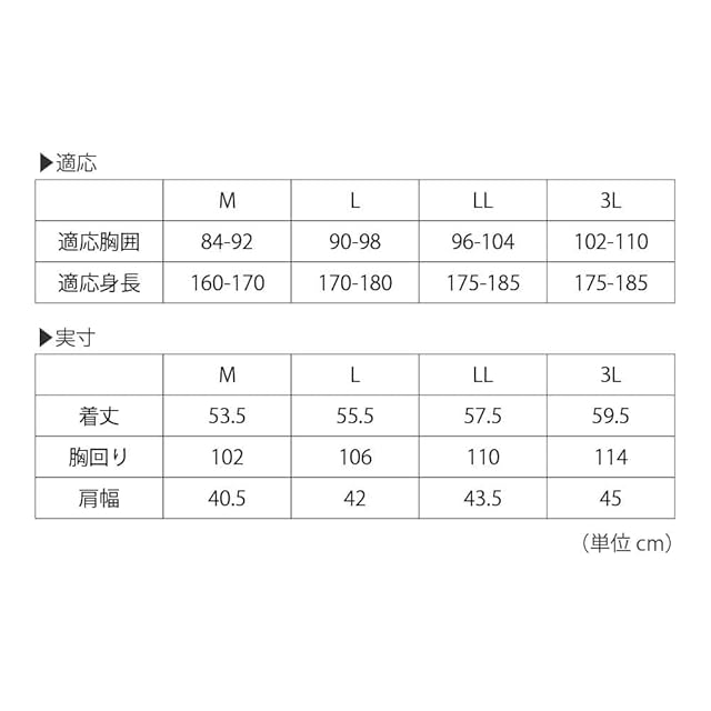 [適応胸囲]:M:84‐92,L:90‐98,LL:96‐104,3L:102‐110