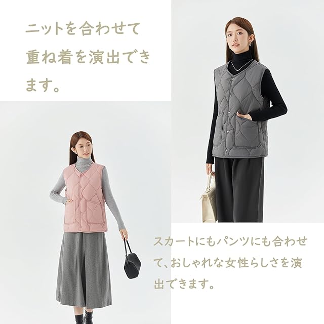 [Niliv] ダウンベスト 中綿ベスト レディース 軽量 防寒 中綿入り 無地 ベスト カジュアル ゆったり アウトドア(ピンク L)