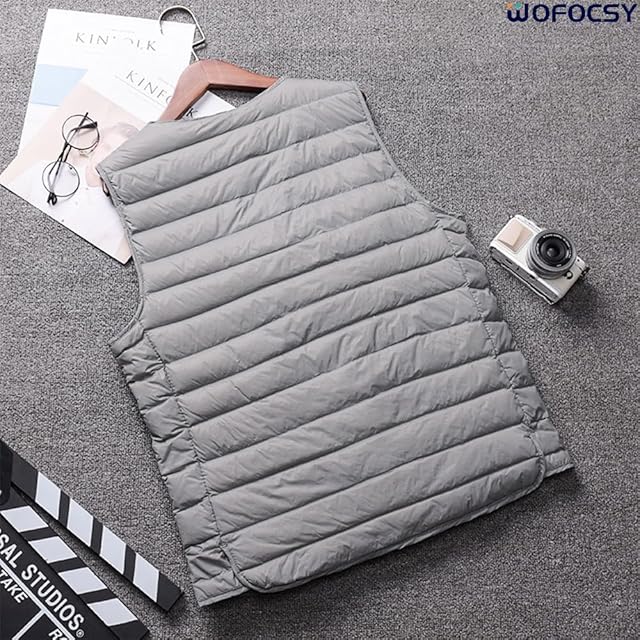 商品名:WOFOSY ノーカラー ダウンベスト メンズ 超軽量 登山 暖かい ウルトラライト インナー ベスト おしゃれ コンパクト収納 カジュアル 通勤 旅行 春秋冬 SY213 (M, グレー)