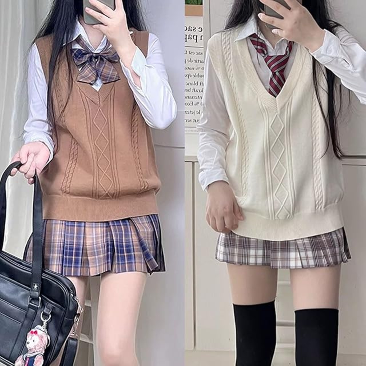 超人気の学生ベスト、女子高校生のお気に入りのニットベストです。シンプルなデザインと様々な色が女子高生の元気を爆発させますよ
