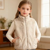 [Rolanko] フリースベスト キッズ ボアベスト 女の子 男の子 子供服 ジャケット アウター 裏起毛 防寒 ノースリーブ シンプル ルームウェア 普段着 春秋冬 ベージュ 130