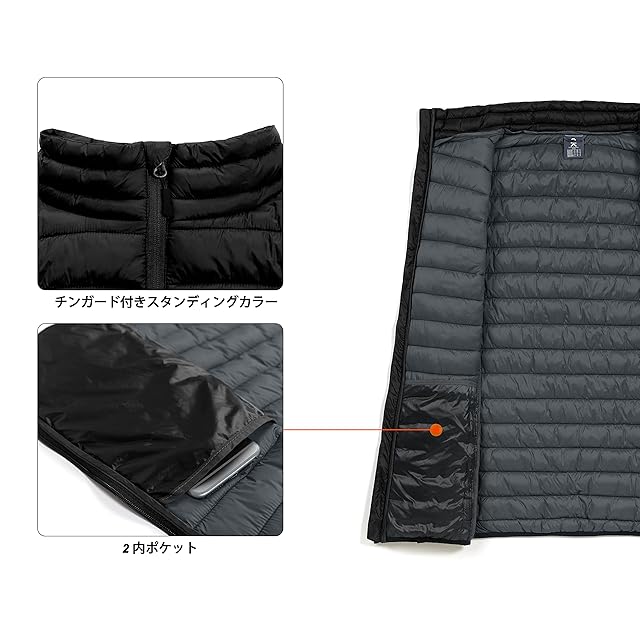 軽量性と保温性: 軽量性と通気性のよいリサイクル中綿をキルティング、寒気を防ぎ、熱を逃しません、ウエアー内部を暖かな状態に保ちます。真冬の時にどこかく安心できる温かさがある1着。
