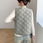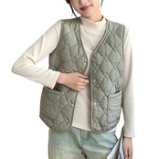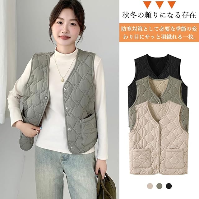 [WETURAST] ダウンベスト レディース ベスト Vネック ボアベスト ポケット付き 袖なし 前開き ノースリーブジャケット ウルトラライト インナーダウン 軽量 暖かい 防寒 保温 無地 細身 カジュアル 普段着 春秋冬