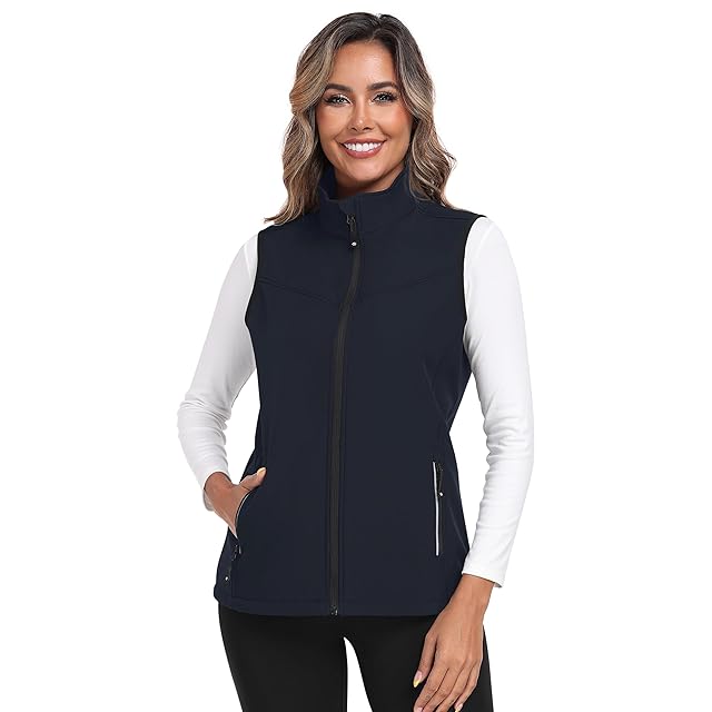 [MoFiz] レディース ソフトシェルベスト ノースリーブ 防水 防風 透気 アウトドア ゴルフ ウェア 通勤対応 カジュアルジャケット 女性用 反射プリント 多機能ポケット 春 秋 冬
