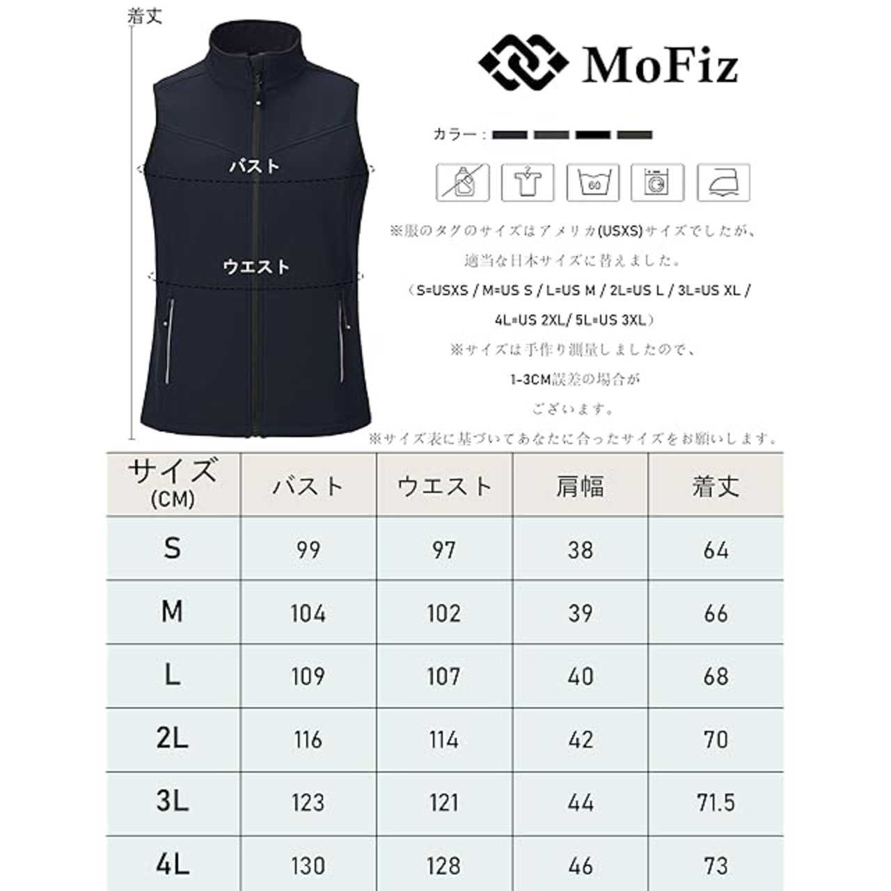 商品名:[MoFiz] レディース ソフトシェルベスト ノースリーブ 防水 防風 透気 アウトドア ゴルフ ウェア 通勤対応 カジュアルジャケット 女性用 反射プリント 多機能ポケット 春 秋 冬