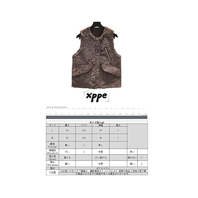 商品名:[xppe] ベスト レディース ボリューム ゆったり ファー ジャケット 重ね着 レイヤード 春 秋 冬 カジュアル 通勤
