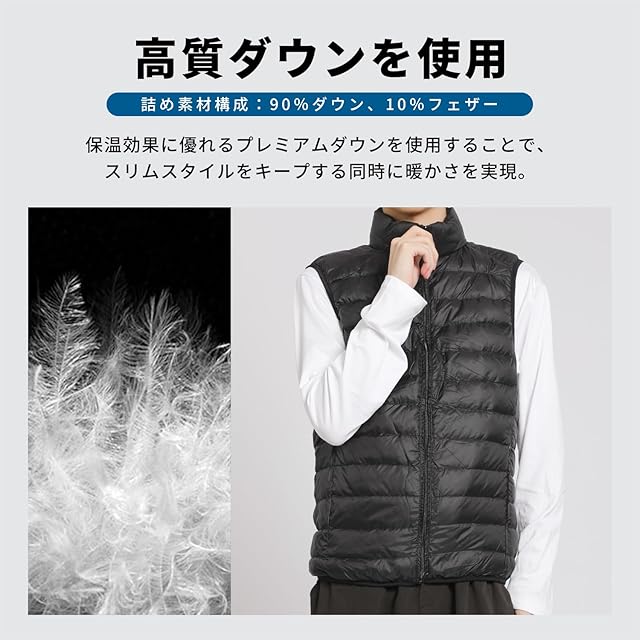 商品名:[PAFHL] ダウンベスト メンズ 超軽量 防寒 ベスト 冬 服 軽度撥水 暖かい あったか コンパクト収納袋付き 立ち襟 (77011カーキ,4XL)