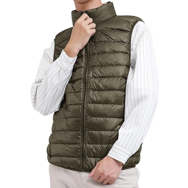 [PAFHL] ダウンベスト メンズ 超軽量 防寒 ベスト 冬 服 軽度撥水 暖かい あったか コンパクト収納袋付き 立ち襟 (77011カーキ,4XL)