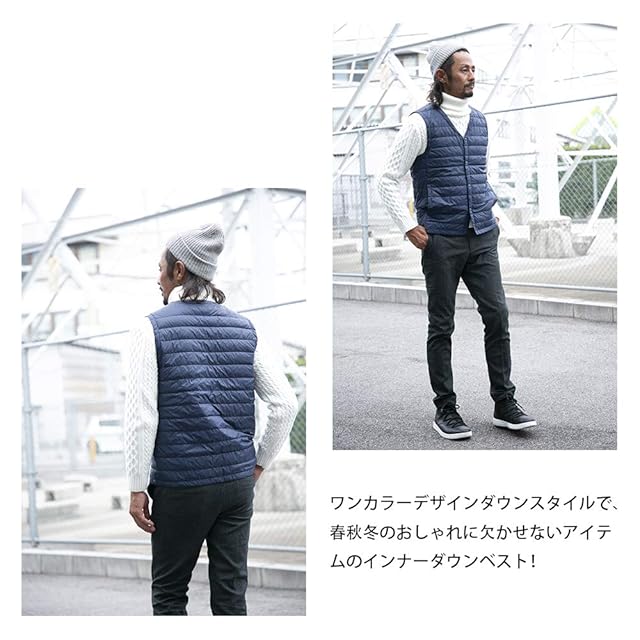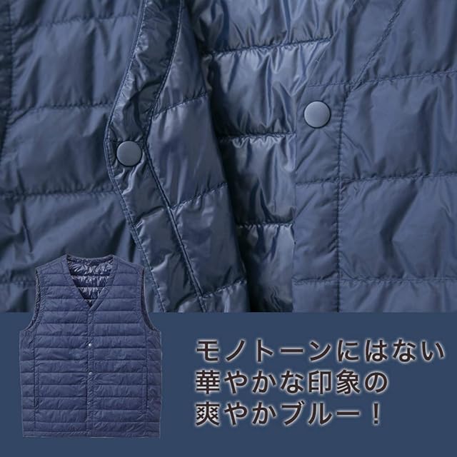 商品名:[netease gensen] ダウンベスト メンズ インナーダウンベスト ウルトラライトダウン 軽量 防寒 暖かい シンプル 無地 秋 冬 3色展開 クルーネックインナーダウンベスト (3L, ネイビー1ーV)