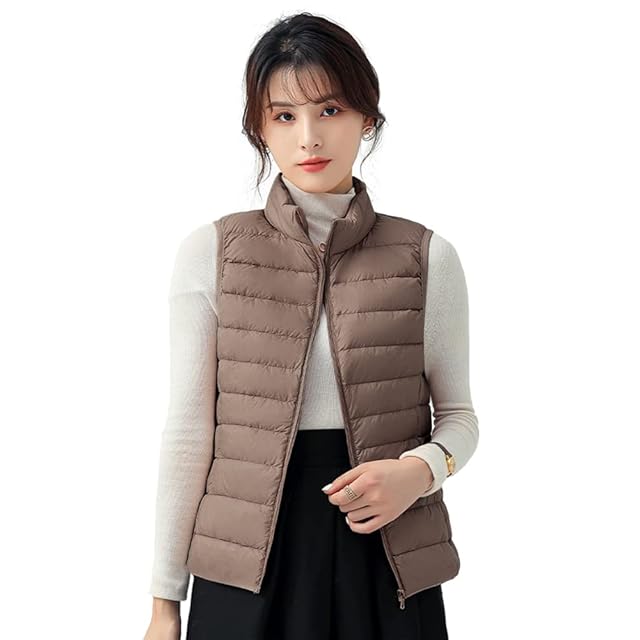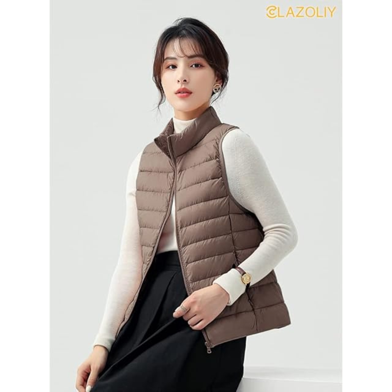 CLAZOLIY ウルトラライト ダウンベスト レディース 暖かい 防寒 ライトウエイト パファーベスト コンパクト収納 CL109 (JP, アルファベット, S, カーキ)