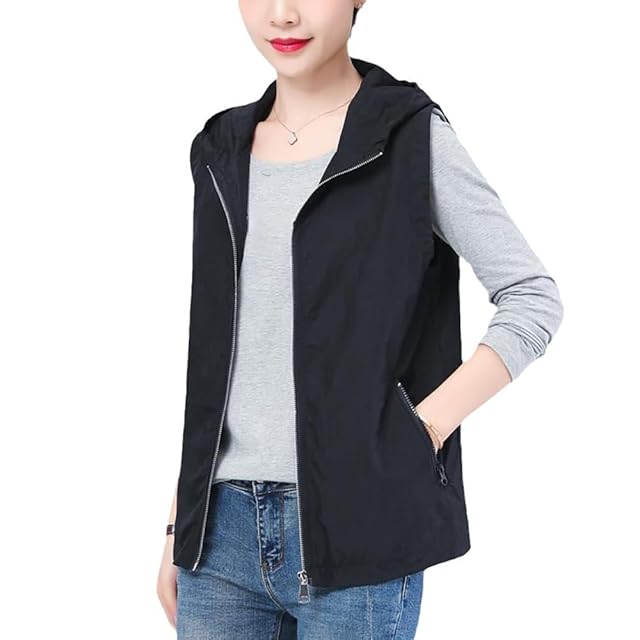 商品名:女性フード付きベスト春夏薄型ライナールーズノースリーブベストジャケットカジュアルジッパー付きポケット暖かいベスト