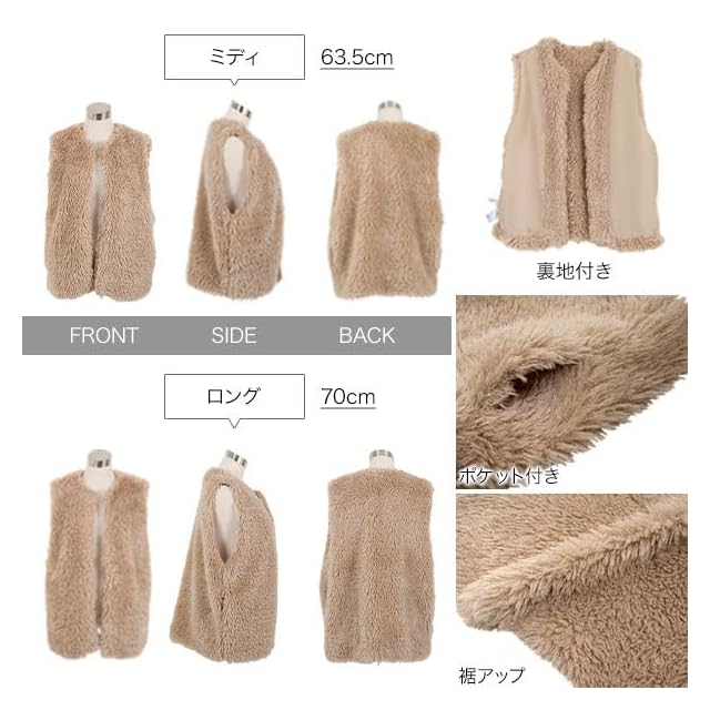 シーズンムード際立たせるファーベスト。<br>モコモコとしたボリューム感が可愛く見た目の暖かさも両立。<br>大人のカジュアルスタイルを華やかに演出し存在感のあるスタイリングにアップデートしてくれる一着です。<br>身長やお好みのバランス感でお選びいただけるミドル丈とロング丈の2丈展開です◎<br>【素材・サイズ感】<br>ふわふわな柔らかさが心地良いプードルフェイクファー素材を使用。<br>軽くてゆったりとしたオーバーシルエットなのでシャツやボリュームスリーブのトップスにも気軽に羽織りやすく、レイヤードのしやすさも魅力のジレベストです◎<br>