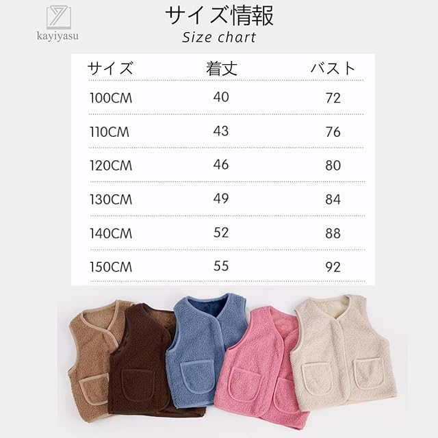 [Kayiyasu] ベスト 裏ボア フリース キッズ 男の子 女の子 もこもこ 子供服 春 秋 冬 通学 通園 無地 100-150(150 ベージュ)