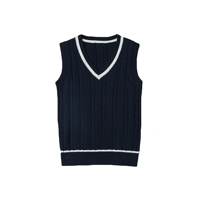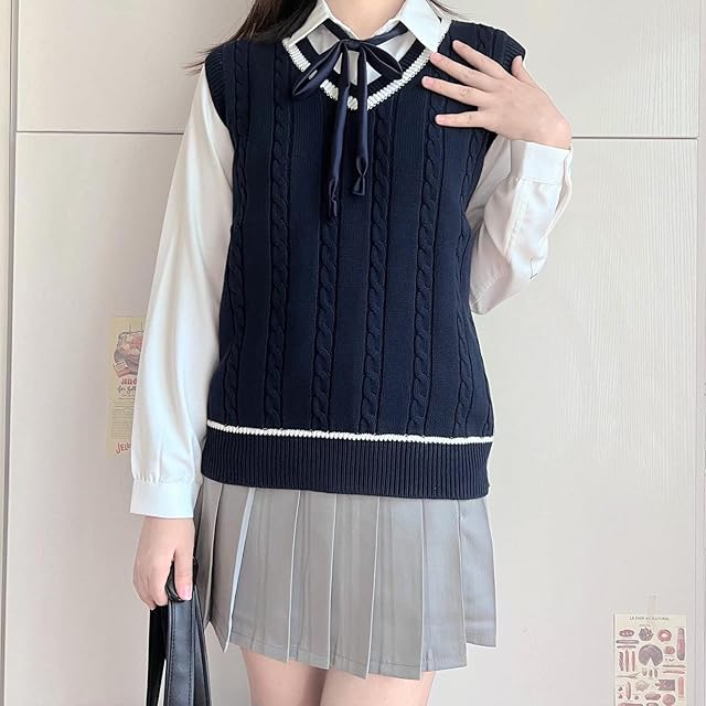 [Blostirno] スクールベスト 女子 学生 制服 ニット Vネック 通学用 無地 ゆったり(JP0028NYT1-M)