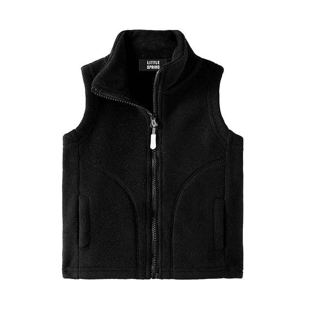 [LittleSpring] キッズ フリースベスト 暖かい アウター 登山 フリース 軽量 黒 無地 子供服 男の子 140