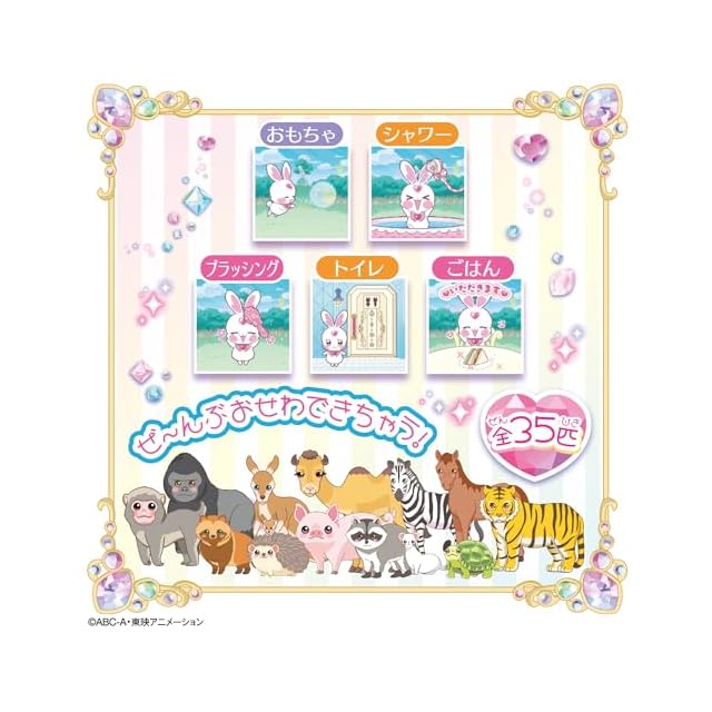アニマルは全35匹!集めたアニマルにごはんを与えたり、ブラッシングしたり、お世話遊びが楽しめます。