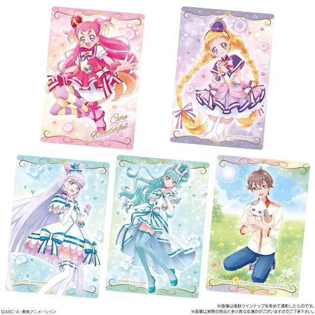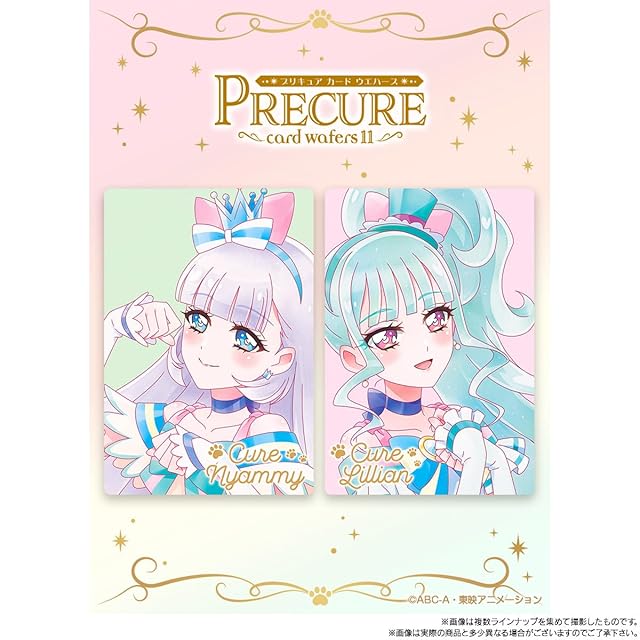 全27種よりランダムに封入。こだわりのオリジナルイラストをラインナップしたカード付きウエハース第11弾が登場!歴代のプリキュア達をラインナップするシリーズです。カードは高級感あるメタリックプラカード。イラストは全種、構図や彩色にこだわったここでしか手に入らないオリジナル描き下ろしイラストを使用しています。