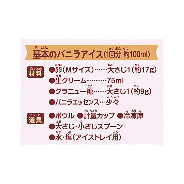 【セット内容】アイストレイ:1個、本体:1個、カップ:1個、スティック:1個、ナイフ:1個、スプーン:1個、ヘラ:2本、取扱説明書、アレンジブック