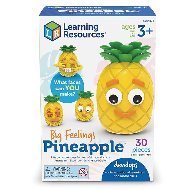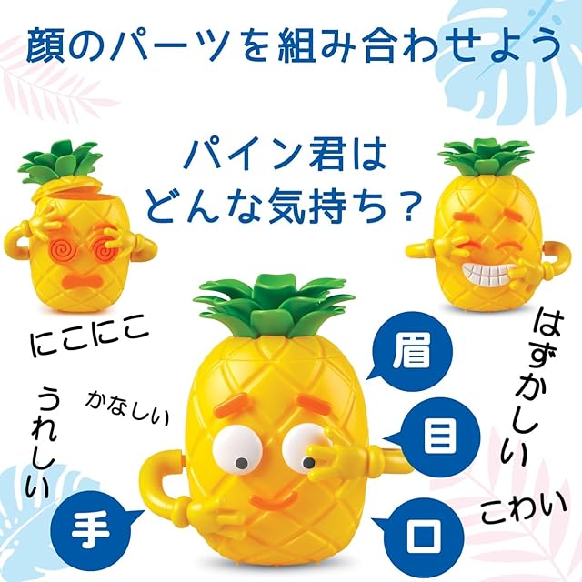 世界100カ国以上で愛されるラーニング リソーシズ (Learning Resources) 社のにこにこパイナップル (Big Feelings Pineapple)は、顔のパーツをパイン君に取り付けて感情を表現する知育玩具です。