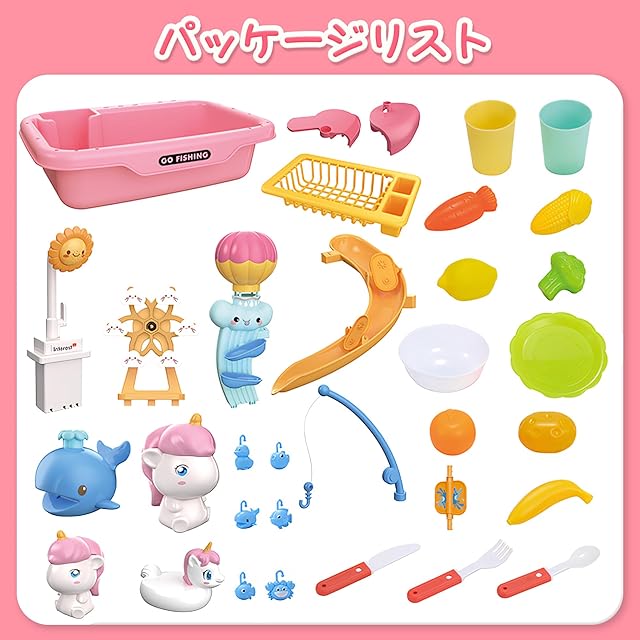 商品名:おままごとセット Cute Stone おままごと 知育玩具 食器洗い機 おもちゃ 水遊び 玩具 大容量シンク 循環出水 リアルな食材 魚釣りゲーム 滑り台 観覧車 クジラ噴水 ウォータースライダー ごっこ遊び 誕生日プレゼント 入園祝い