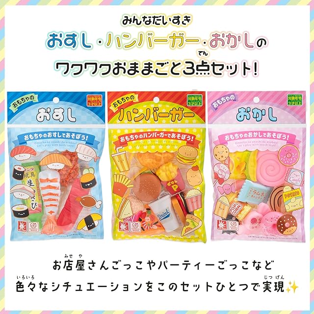 オンダのおもちゃのハンバーガー・おすし・おかしの豪華3点セット♪ ファストフードから和食・スイーツまで、これ一つでお買い物ごっこが大充実!