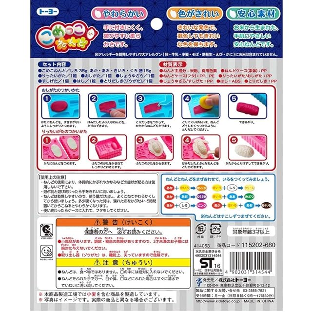 【セット内容1】 こめっこねんど 白(35g)/赤・青・黄・黒(15g)、立体型、押し型
